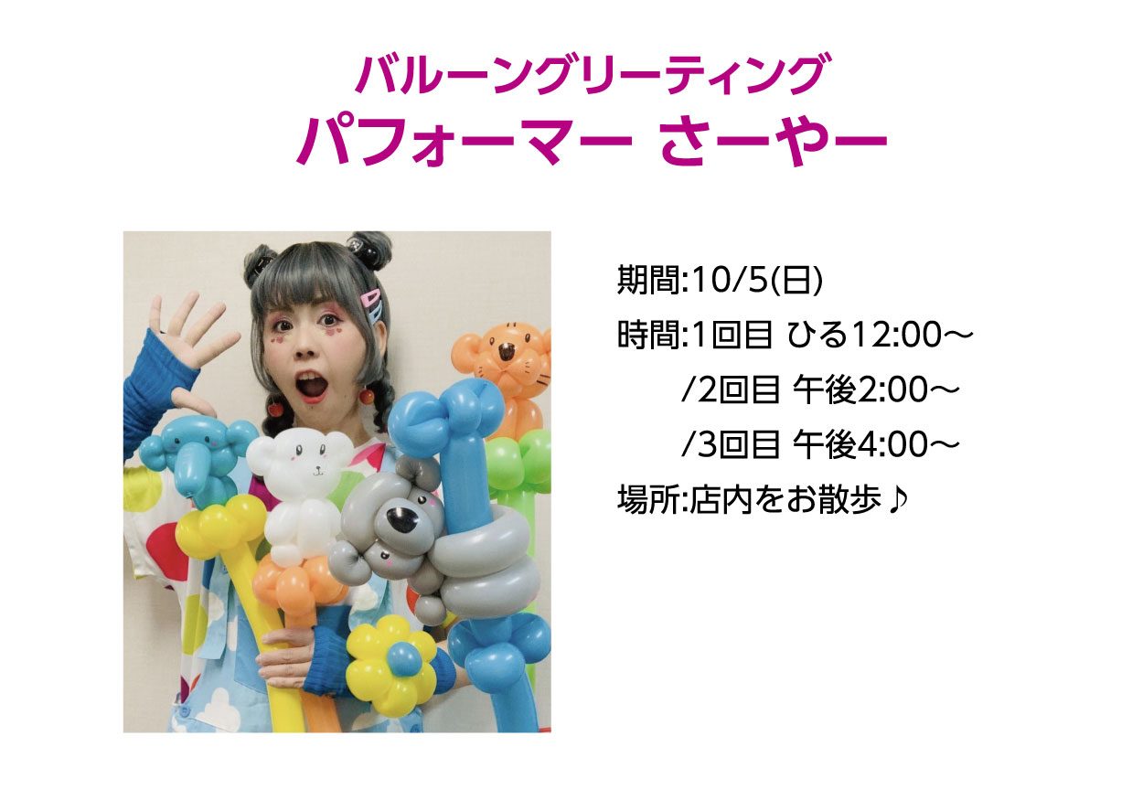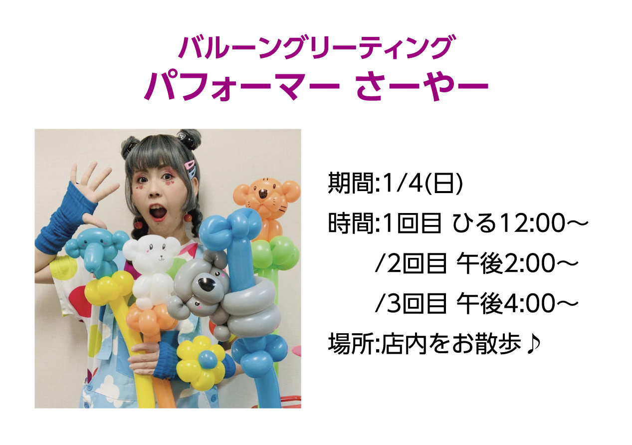 イベントの詳細バルーングリーティング パフォーマー さーやー【期間】