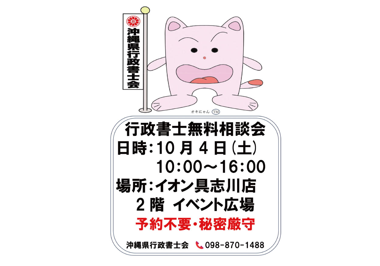 イベントの詳細行政書士無料相談会@イオン具志川店【期間】