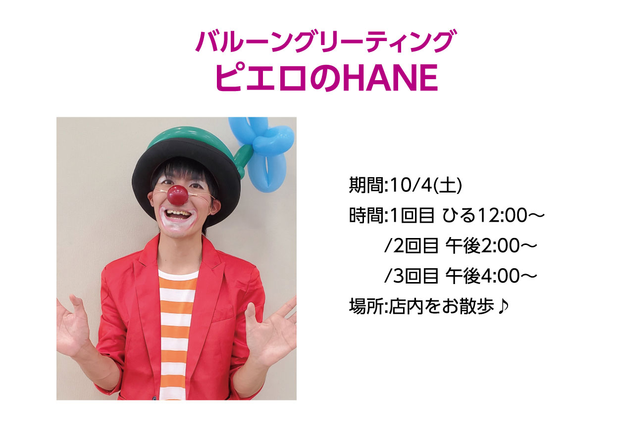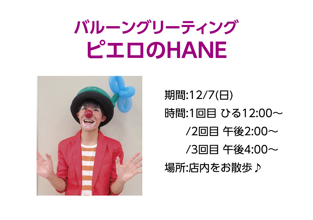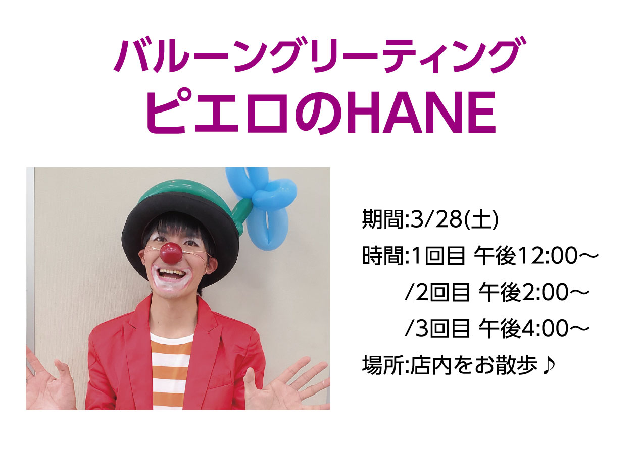 イベントの詳細バルーングリーティング ピエロのHANE【期間】