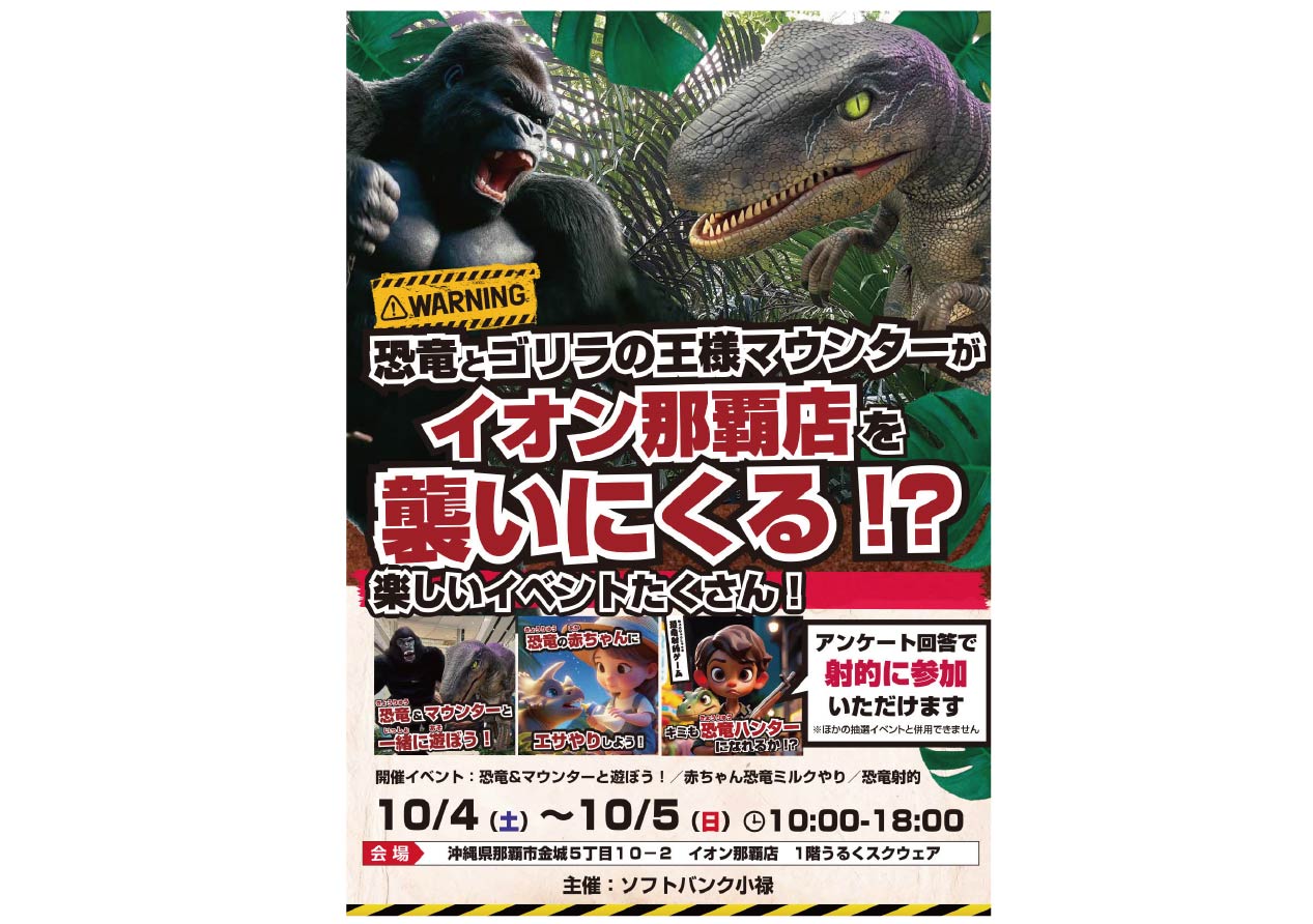 イベントの詳細恐竜とゴリラの王様マウンターがイオン那覇店を襲いにくる!?【期間】