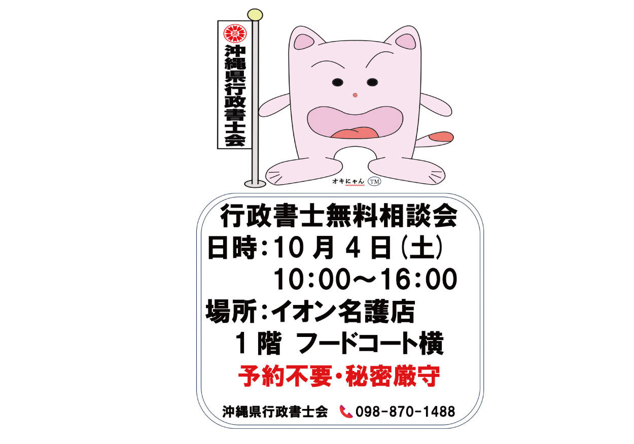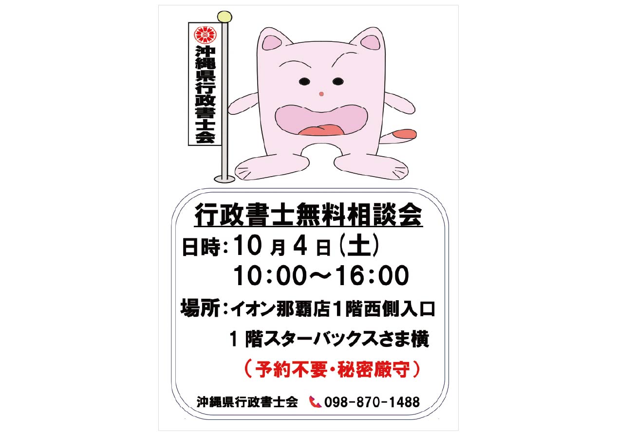 イベントの詳細行政書士無料相談会@イオン那覇店【期間】