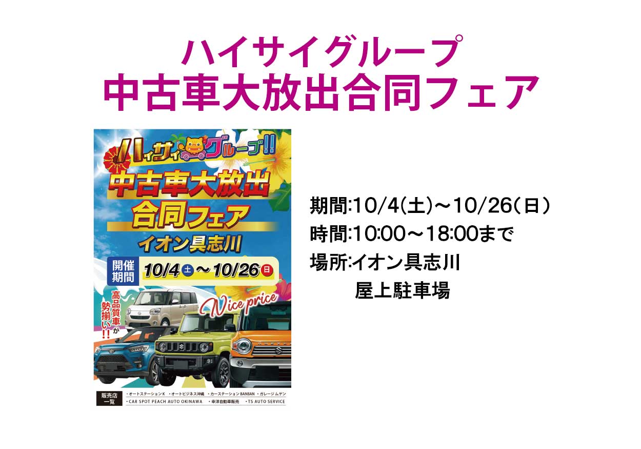 イベントの詳細ハイサイグループ 中古車大放出合同フェア【期間】