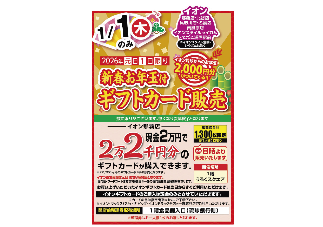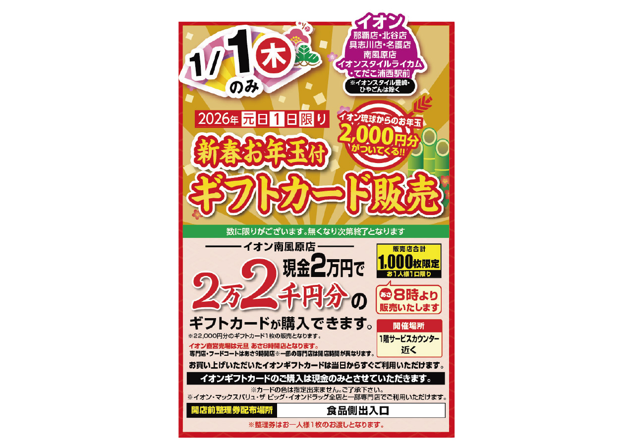 新春お年玉付ギフトカード販売@南風原店