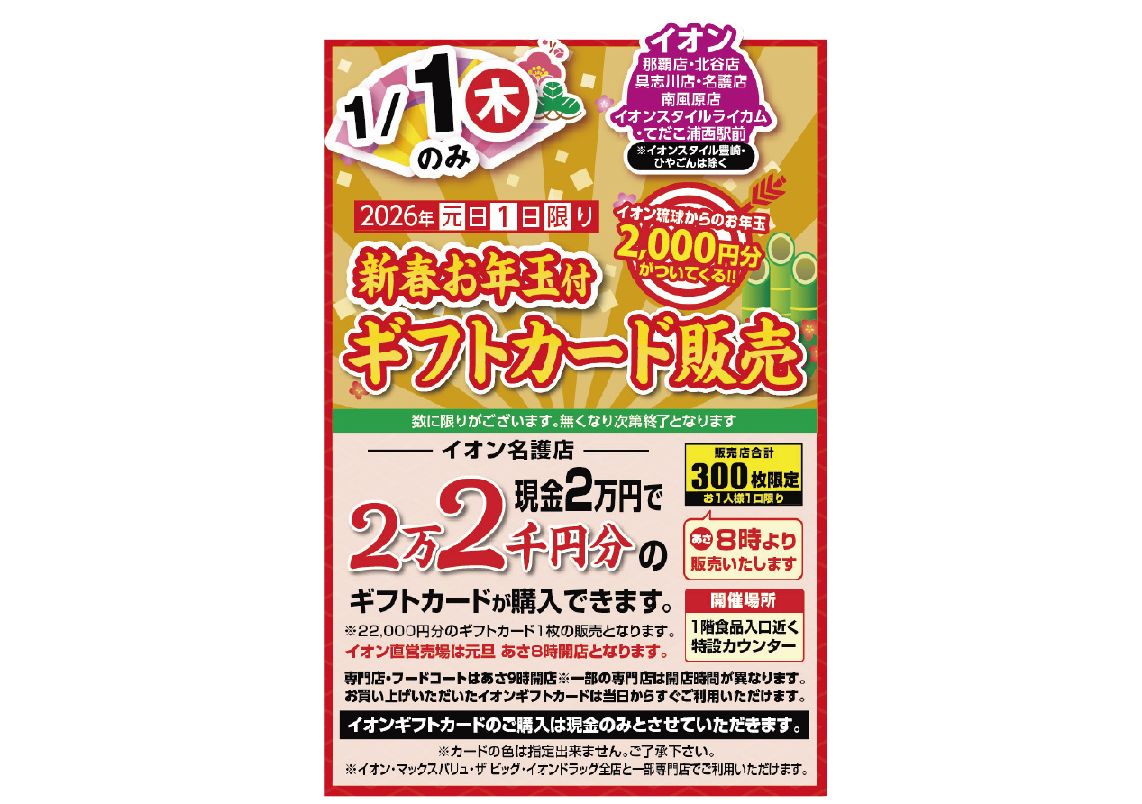 イベントの詳細新春お年玉付ギフトカード販売@名護店【期間】