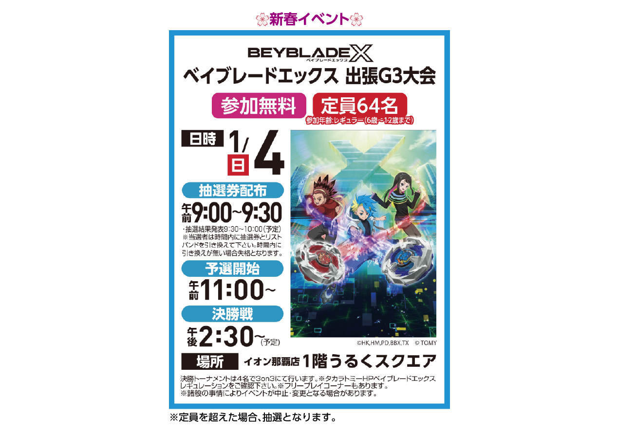 イベントの詳細新春イベント ベイブレードエックス 出張G3大会【期間】