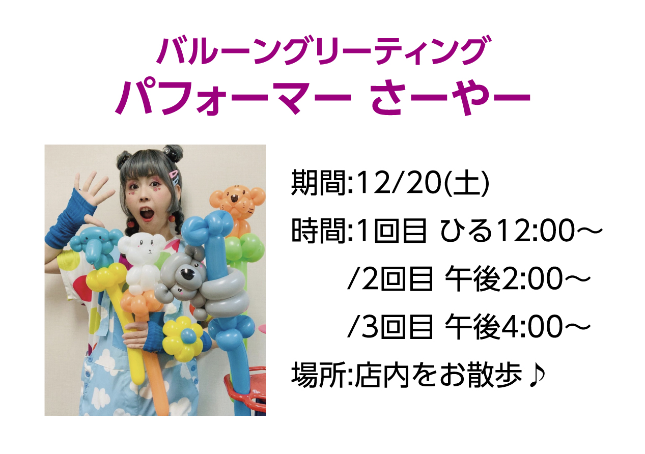 イベントの詳細バルーングリーティング パフォーマーさーやー【期間】