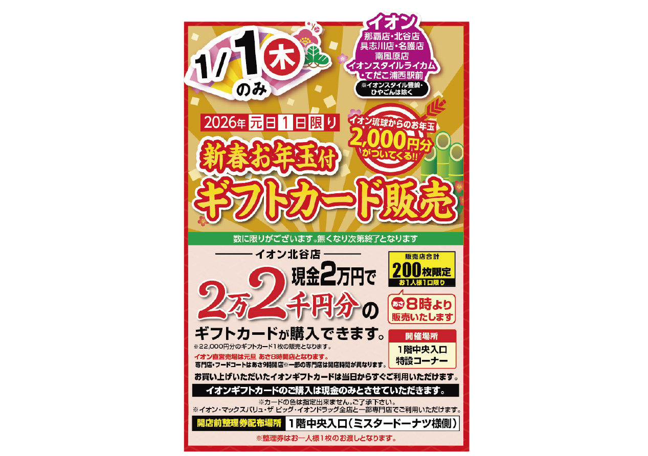 イベントの詳細新春お年玉付ギフトカード販売@北谷店【期間】