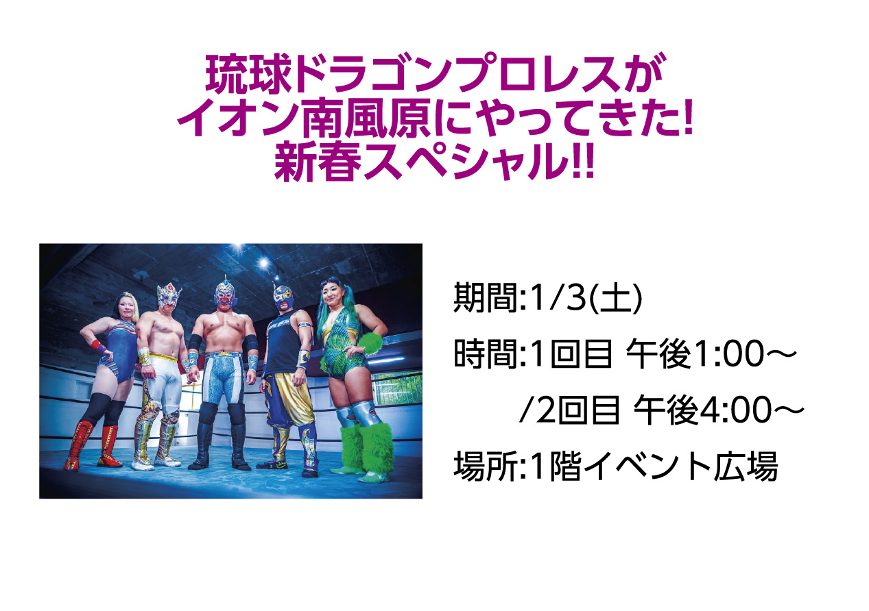 イベントの詳細琉球ドラゴンプロレスがイオン南風原にやってきた!新春スペシャル!!【期間】
