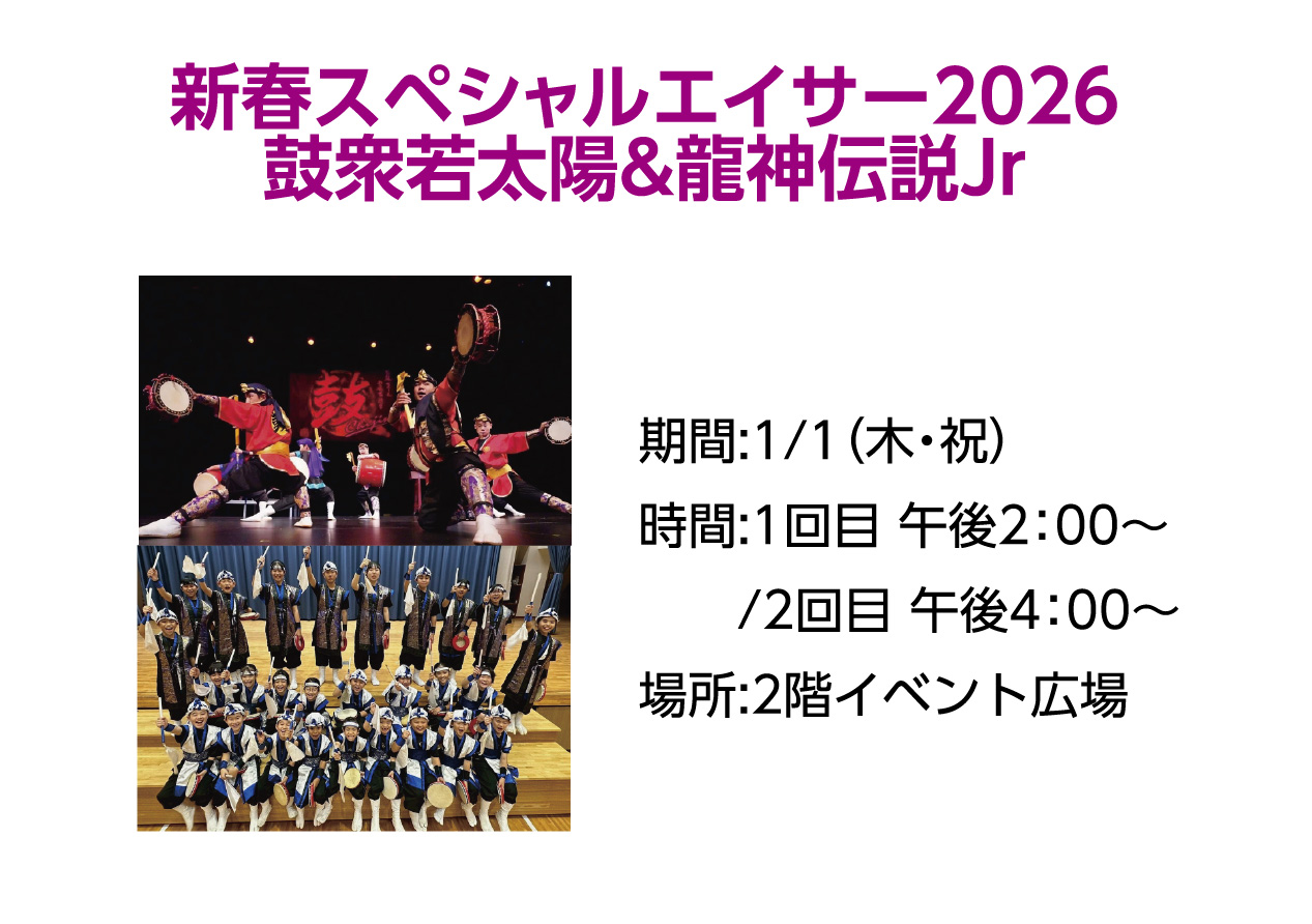イベントの詳細新春スペシャルエイサー2026 鼓衆若太陽&琉神伝説Jr【期間】