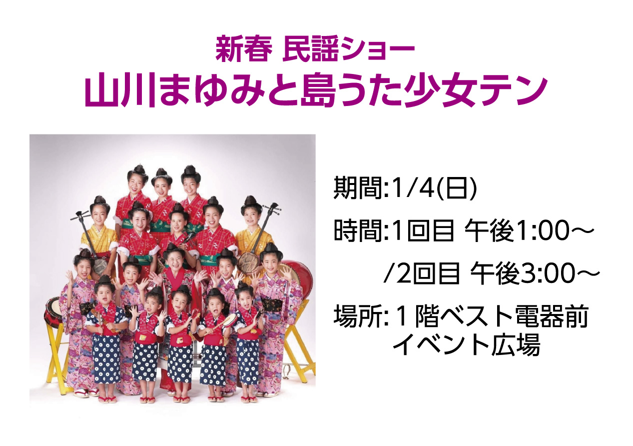 イベントの詳細新春 民謡ショー 山川まゆみと島うた少女テン【期間】