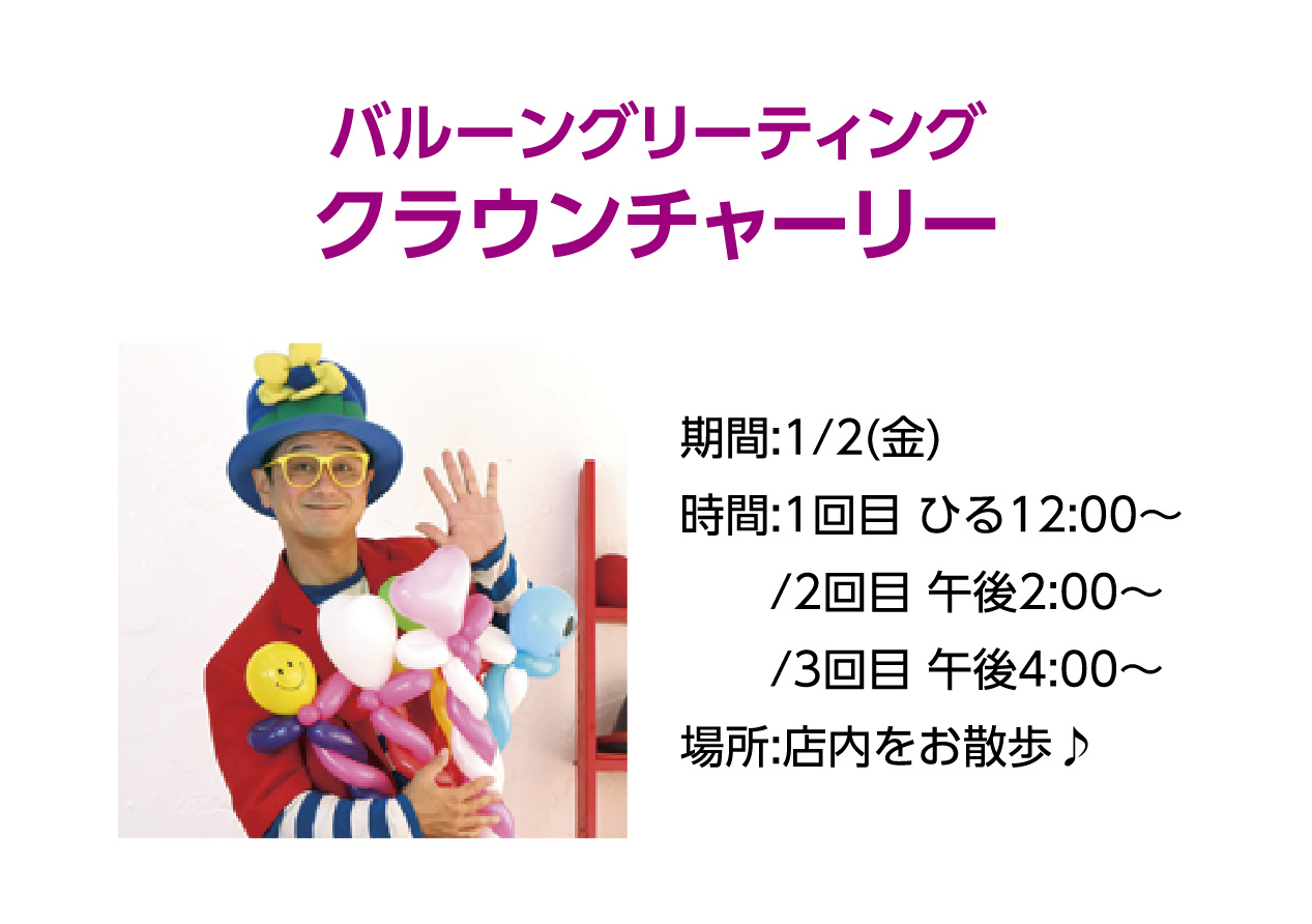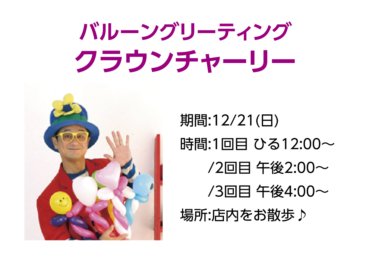 イベントの詳細バルーングリーティング クラウンチャーリー【期間】