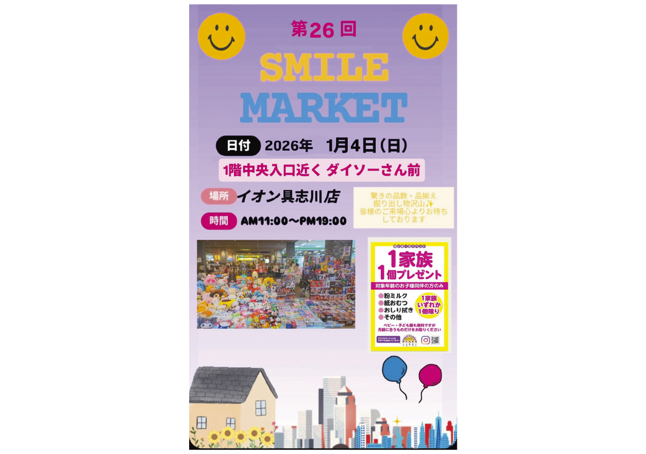 イベントの詳細第26回 SMILE MARKET【期間】