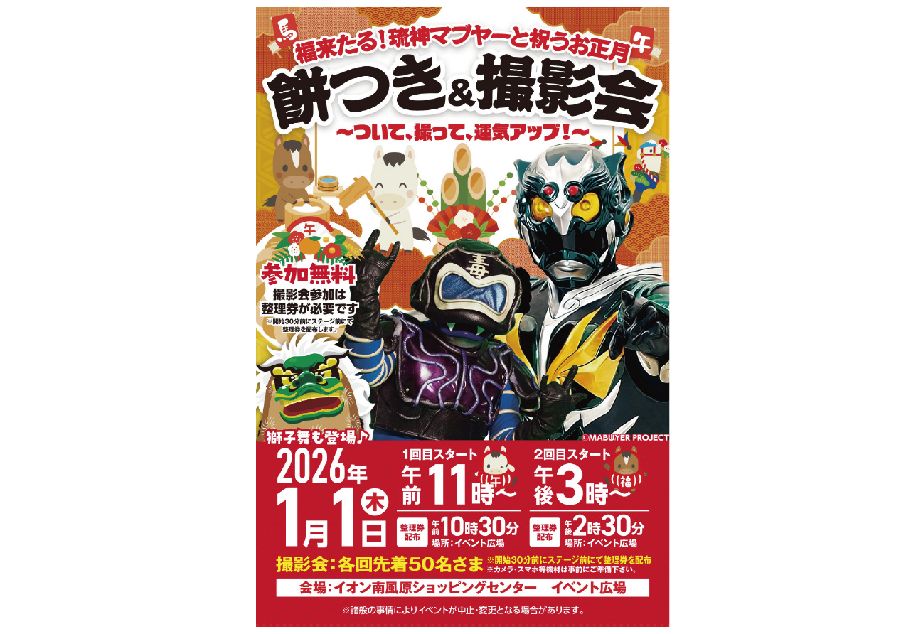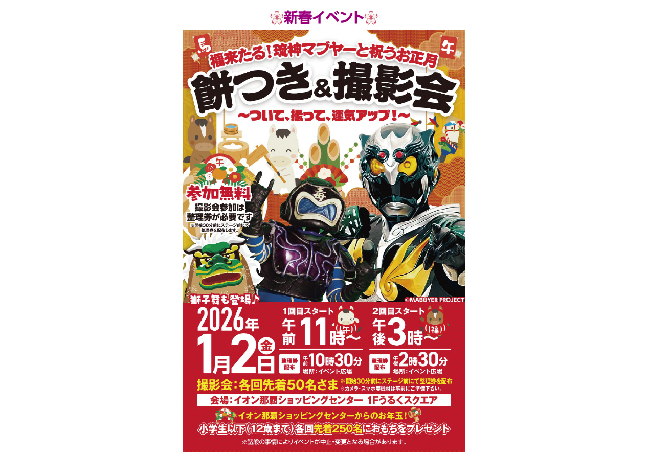 イベントの詳細福来たる!琉神マブヤーと祝うお正月 餅つき&撮影会@那覇店【期間】