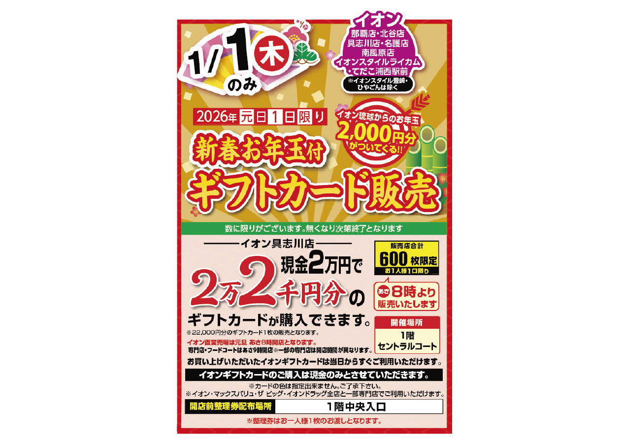 イベントの詳細新春お年玉付ギフトカード販売@具志川店【期間】