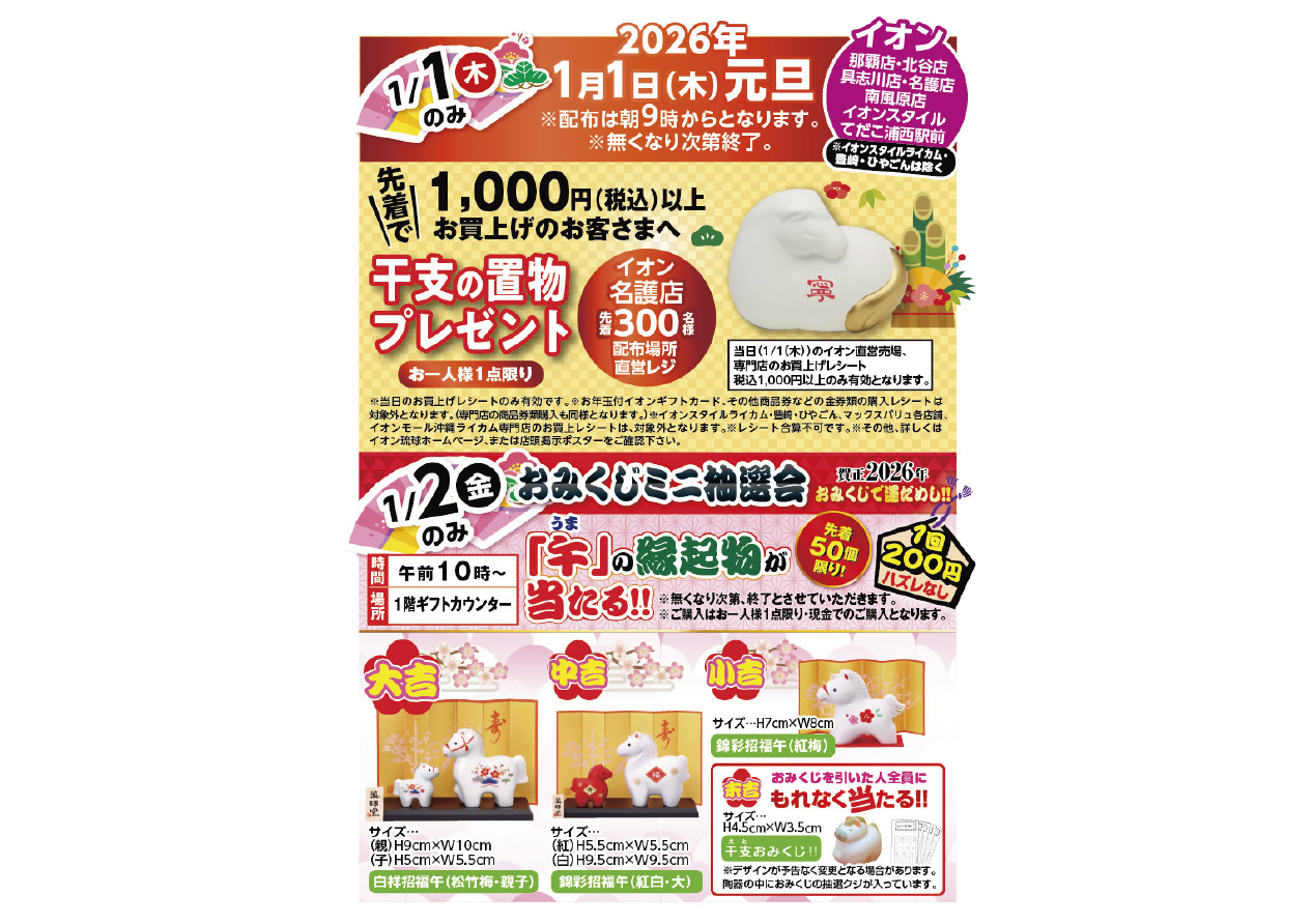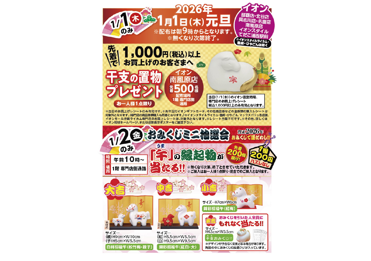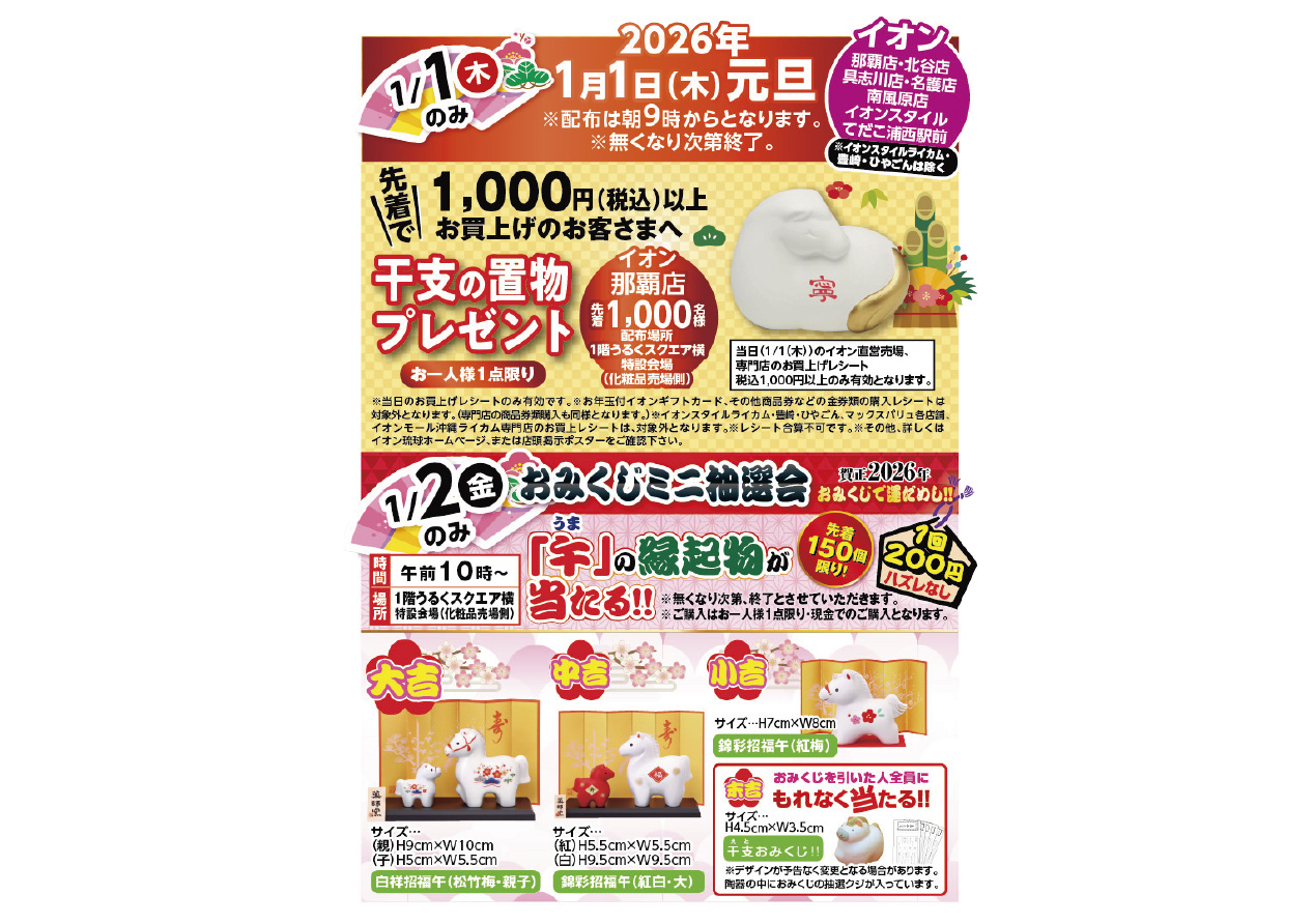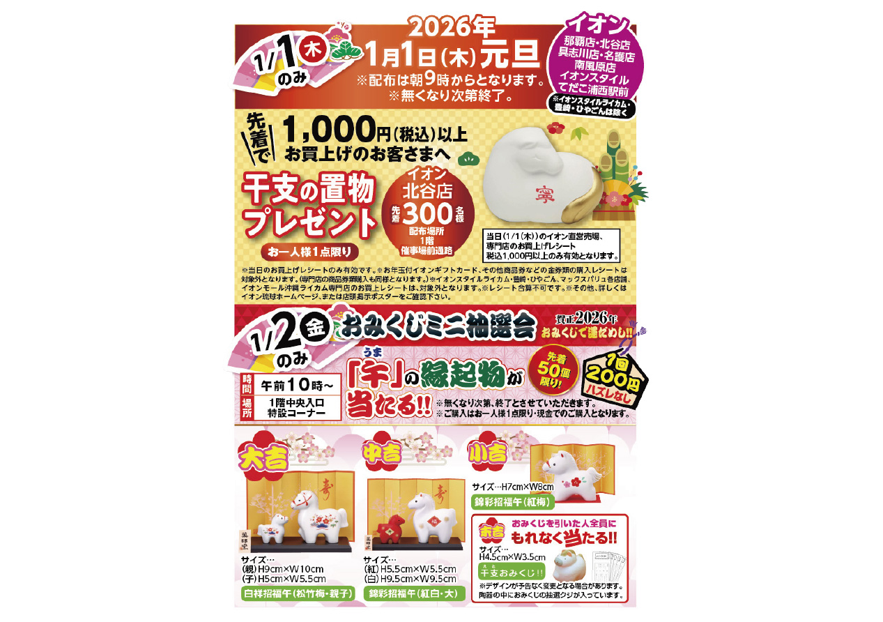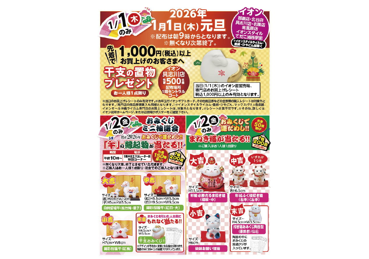 イベントの詳細干支の置物プレゼント&おみくじミニ抽選会@具志川店【期間】