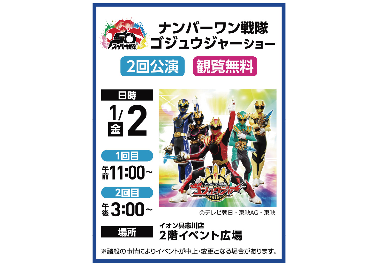 イベントの詳細ナンバーワン戦隊 ゴジュウジャー ショー@具志川店【期間】