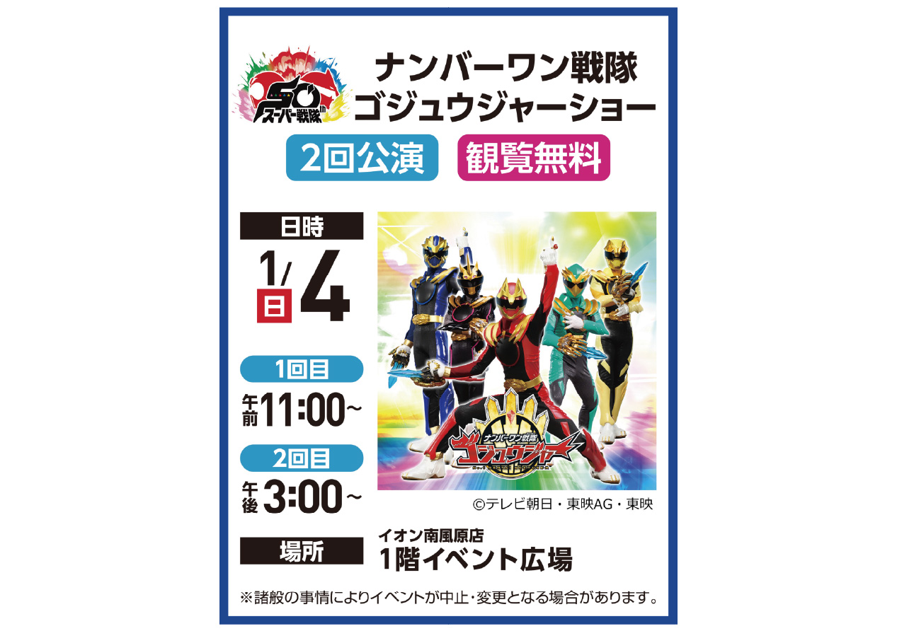 イベントの詳細ナンバーワン戦隊 ゴジュウジャー ショー@南風原店【期間】