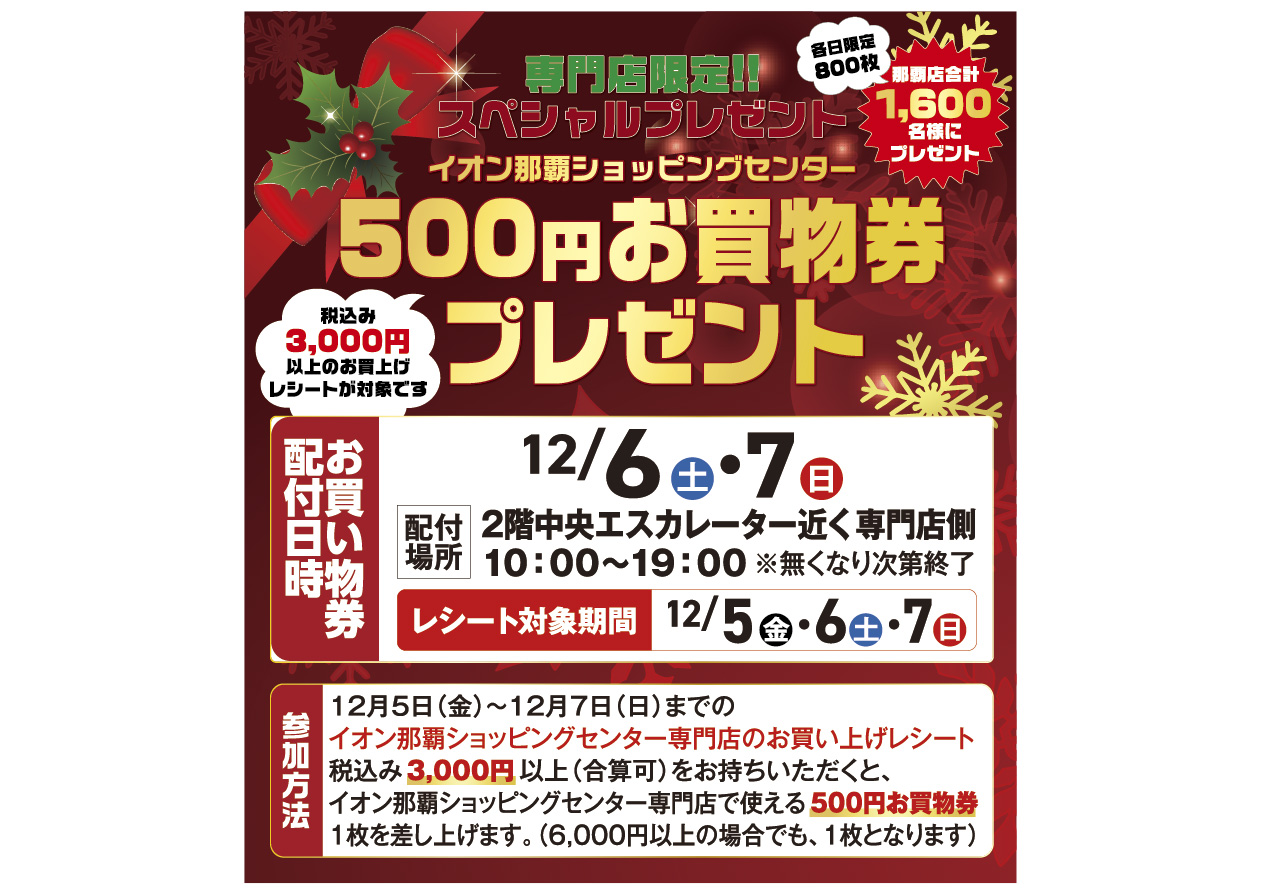 イベントの詳細専門店限定‼スペシャルプレゼント 500円お買物券プレゼント【期間】
