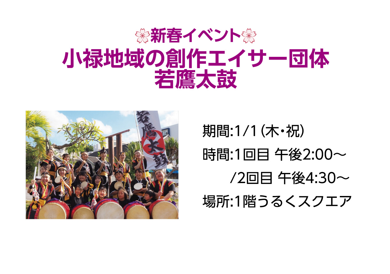イベントの詳細新春イベント 小禄地域の創作エイサー団体 若鷹太鼓【期間】