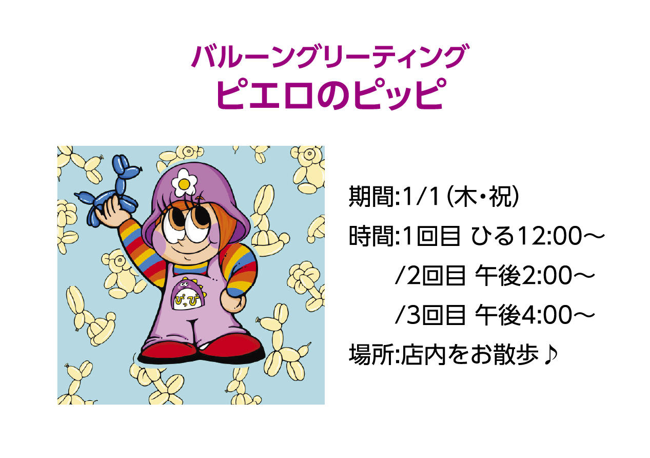 - 干支の置物プレゼント:1階 催事場前通路 / おみくじミニ抽選会:1階 中央入口特設コーナー