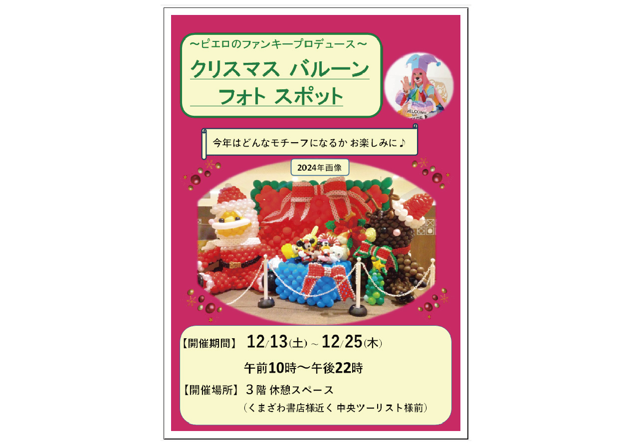 イベントの詳細〜ピエロのファンキープロデュース〜 クリスマス バルーン フォト スポット【期間】