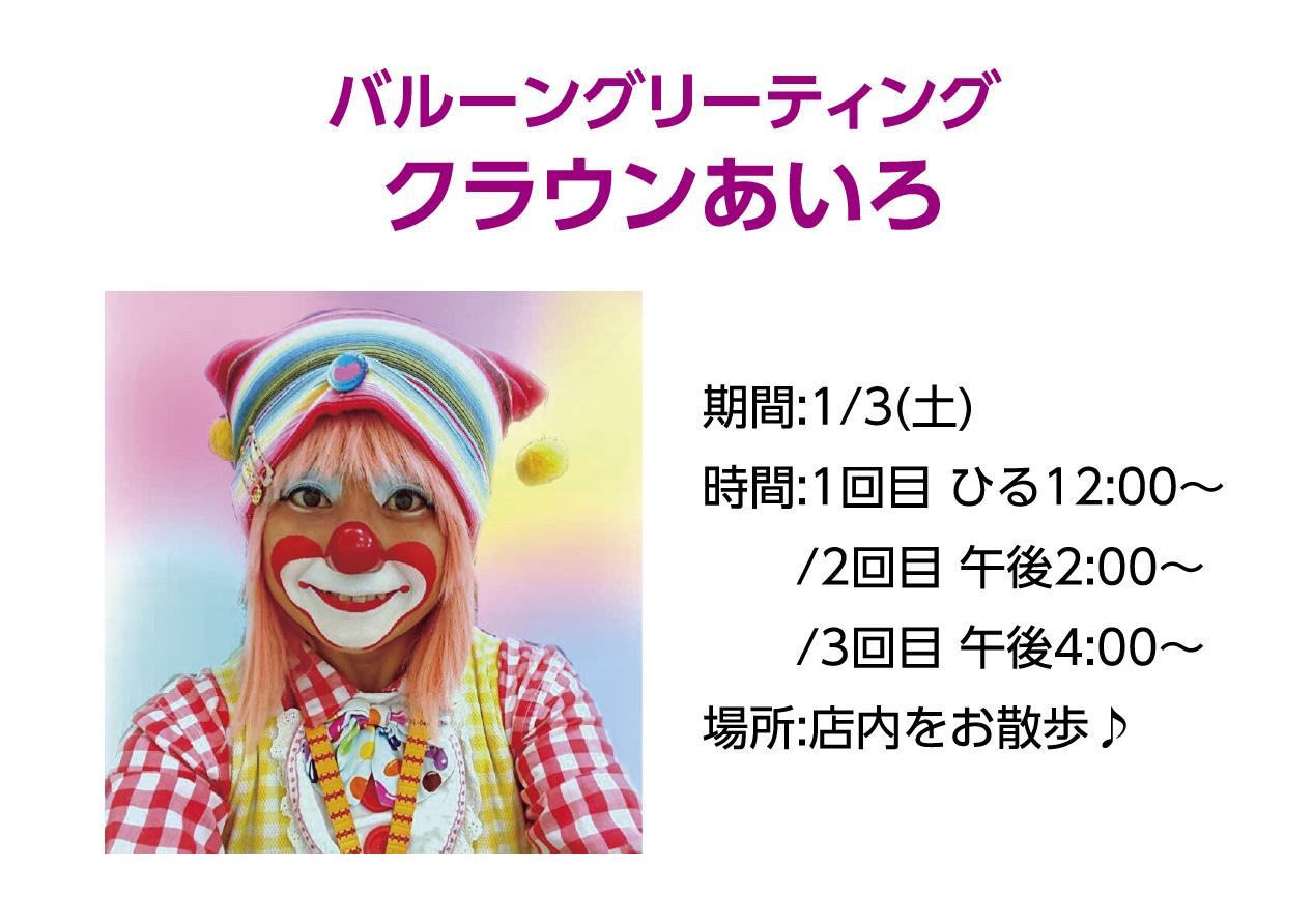 イベントの詳細バルーングリーティング クラウンあいろ【期間】