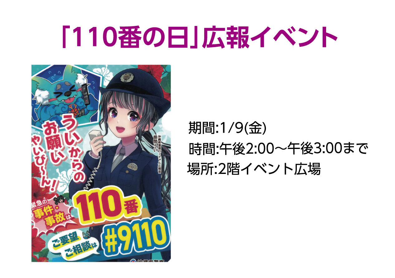 イベントの詳細「110番の日」警察イベント ・小禄高等学校書道部パフォーマンス・那覇青少年舞台プログラム演奏【期間】