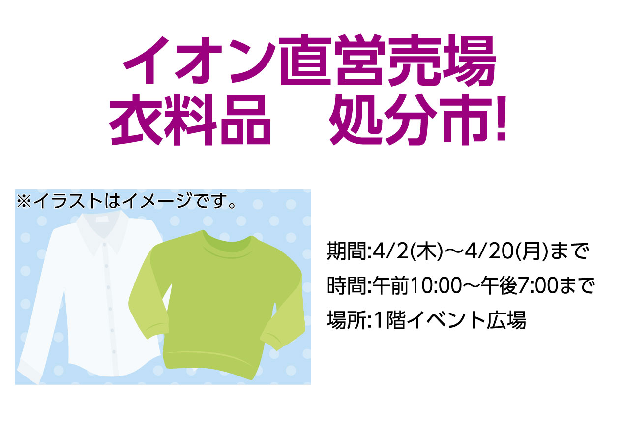 イベントの詳細イオン直営売場 衣料品 処分市!【期間】