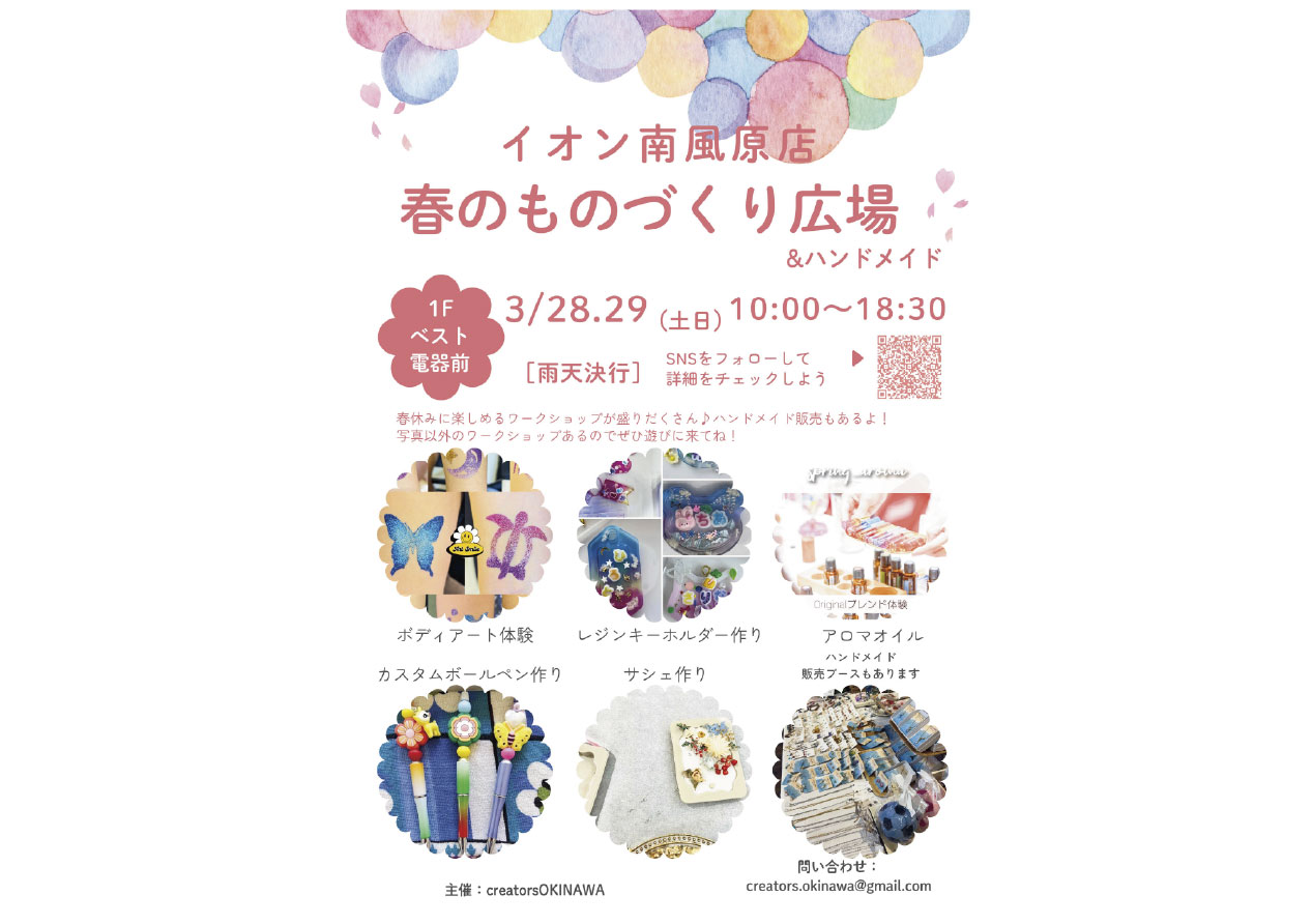 イベントの詳細春のものづくり広場&ハンドメイド【期間】