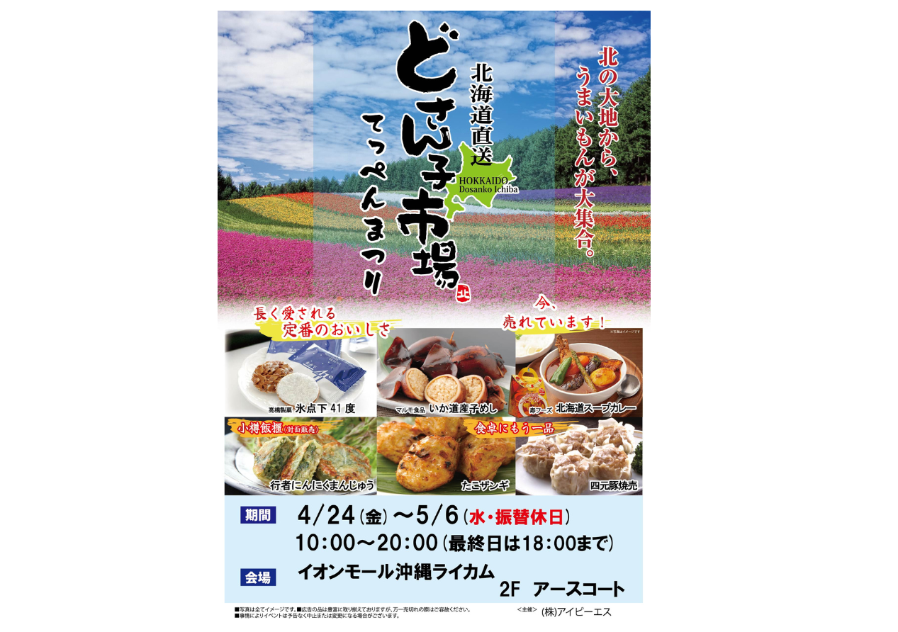 イベントの詳細北海道直送 どさん子市場 てっぺんまつり@イオンスタイルライカム【期間】