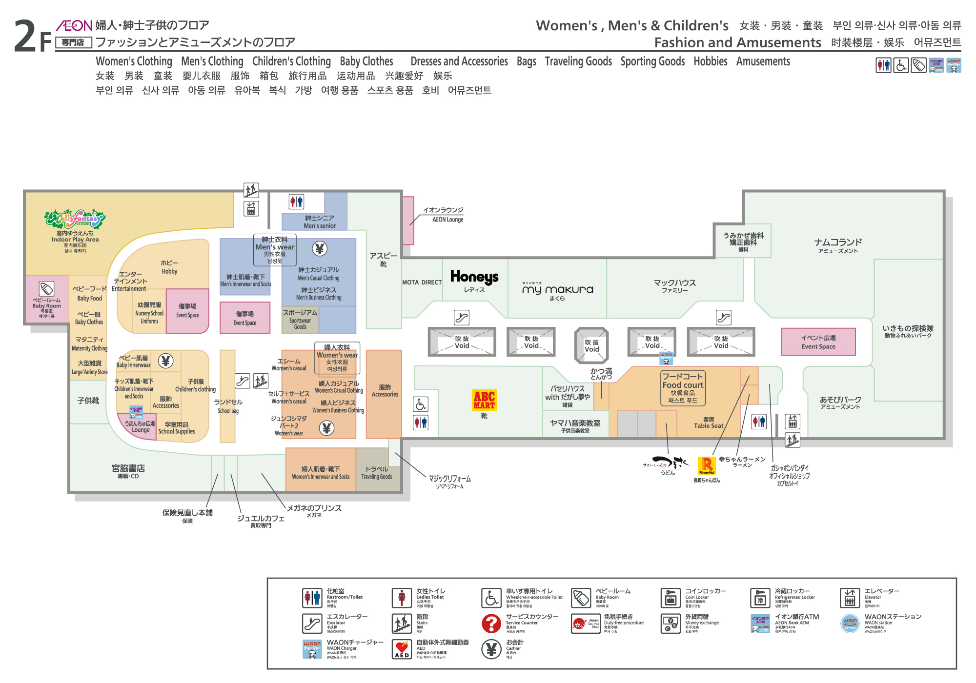 ・衣料品、化粧品、暮らしの品売場、サービスカウンター