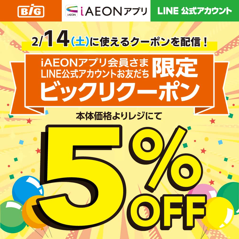 • iAEONアプリ会員さま・LINE友だち限定!ビックリクーポン