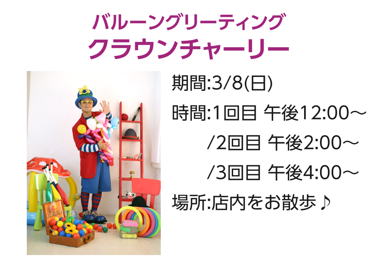 イベントの詳細バルーングリーティング クラウンチャーリー【期間】