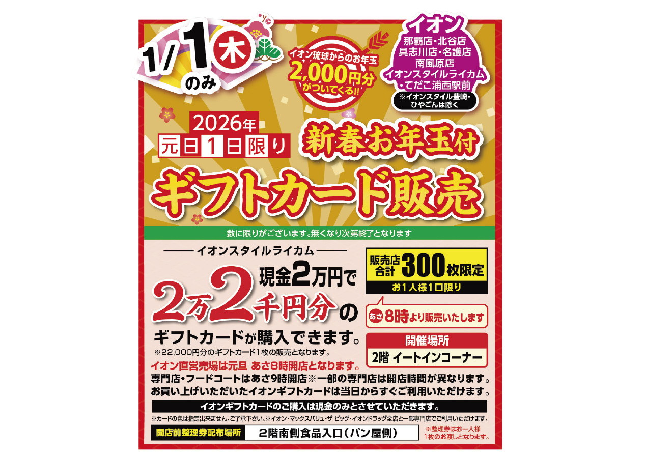 イベントの詳細新春お年玉付ギフトカード販売@ライカム【期間】