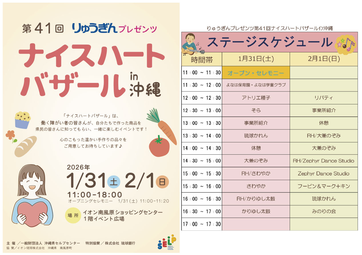 イベントの詳細第41回 りゅうぎんプレゼンツ ナイスハートバザール in 沖縄【期間】