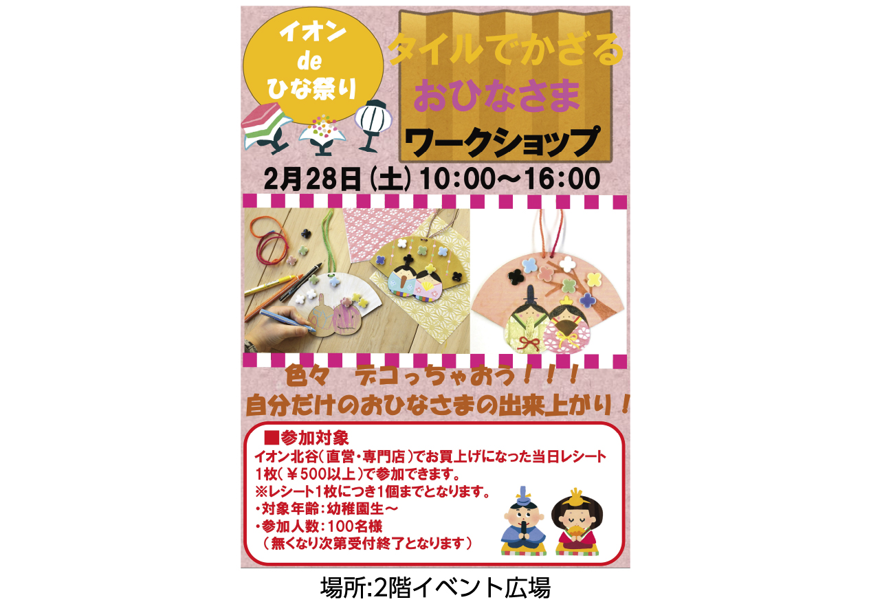 イベントの詳細タイルでかざる おひなさまワークショップ【期間】