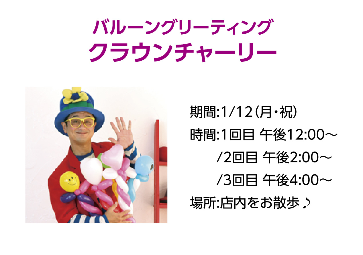 イベントの詳細バルーングリーティング クラウンチャーリー【期間】
