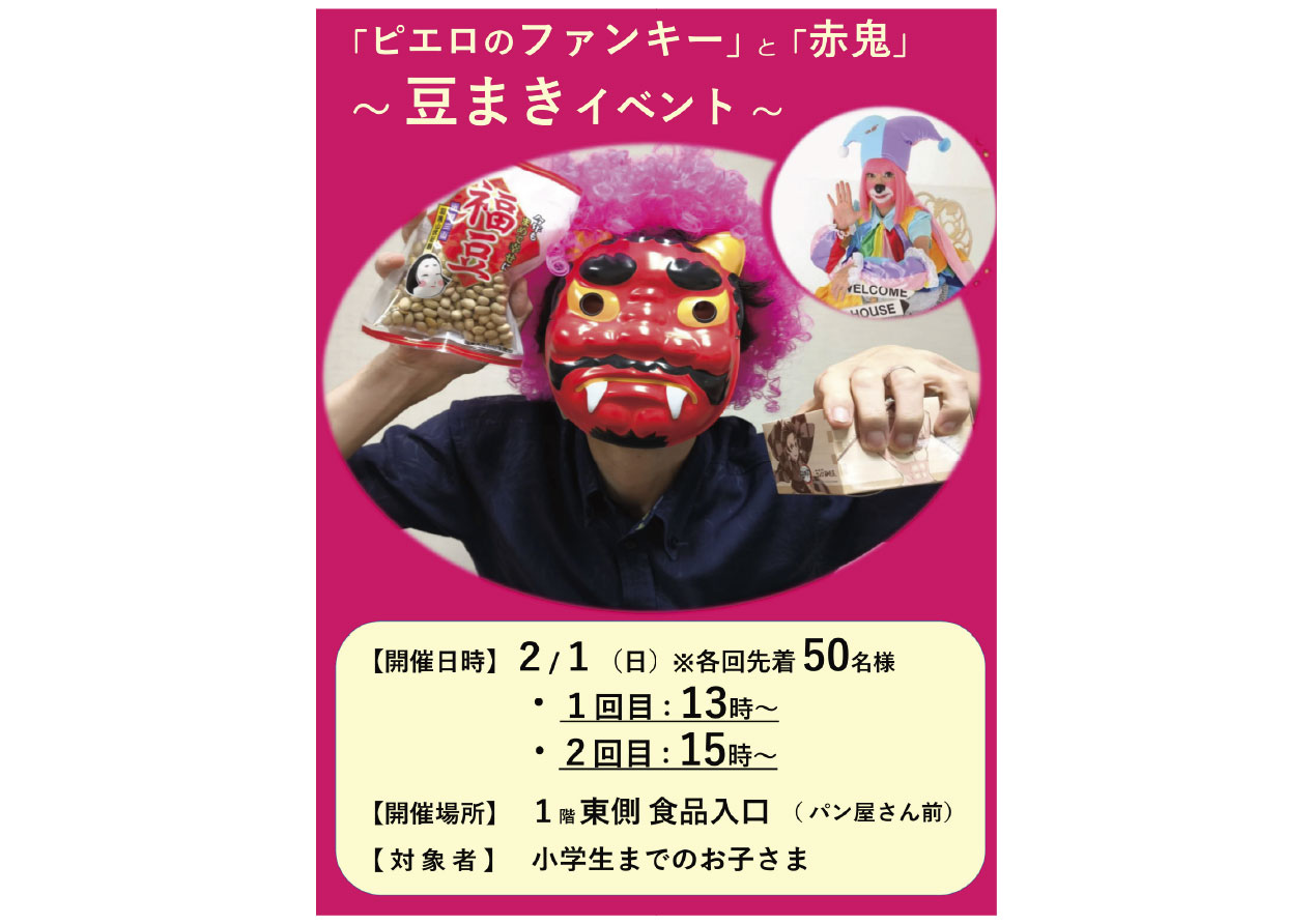 イベントの詳細「ピエロのファンキー」と「赤鬼」〜豆まきイベント〜【期間】