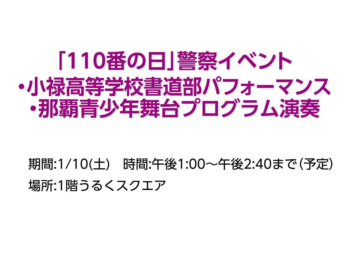 イベントの詳細「110番の日」警察イベント ・小禄高等学校書道部パフォーマンス・那覇青少年舞台プログラム演奏【期間】