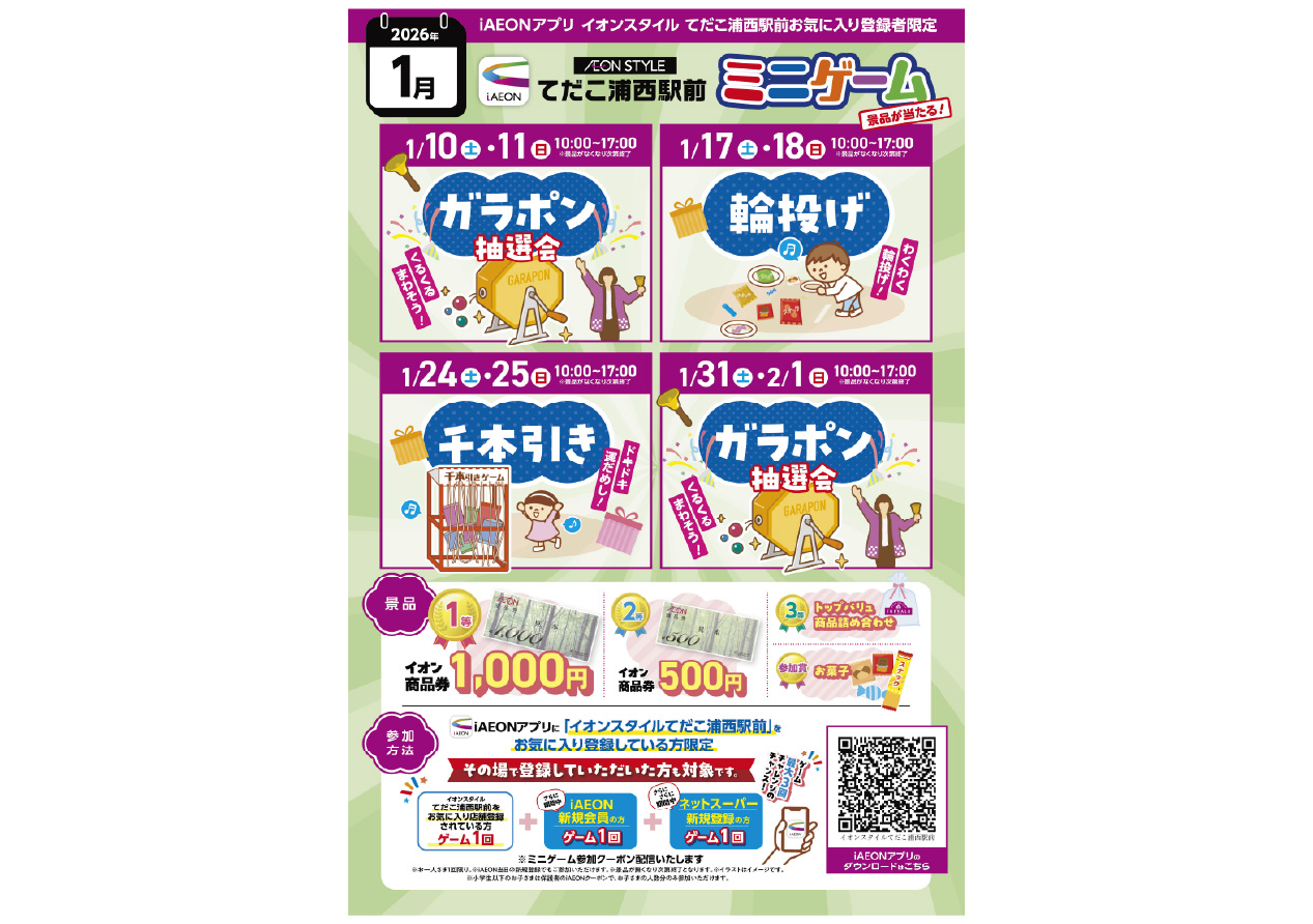 イベントの詳細イオンスタイルてだこ浦西駅前 ミニゲーム【期間】