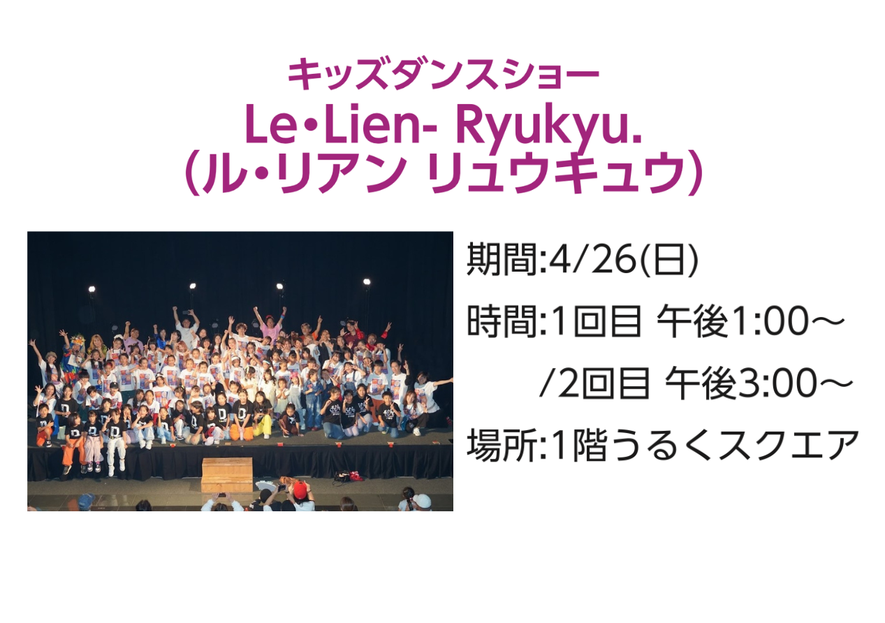 イベントの詳細キッズダンスショー Le・Lien- Ryukyu. (ル・リアン リュウキュウ)【期間】