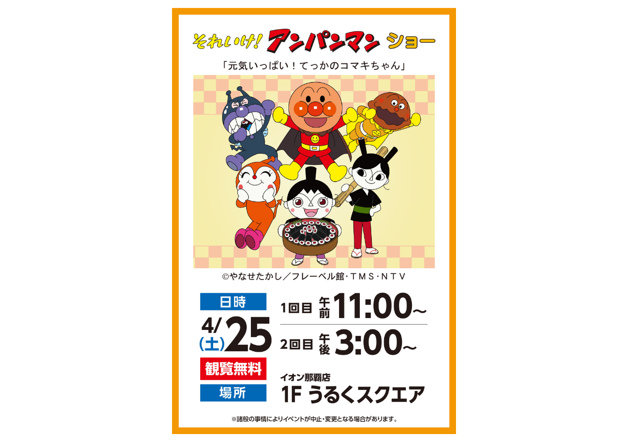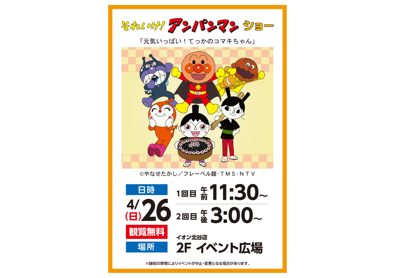 イベントの詳細それいけ!アンパンマン ショー「元気いっぱい!てっかのコマキちゃん」【期間】