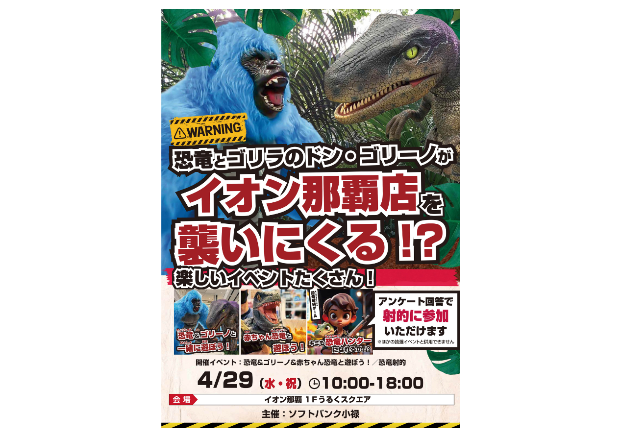 イベントの詳細恐竜とゴリラのドン・ゴリーノがイオン那覇店を襲いにくる!?【期間】