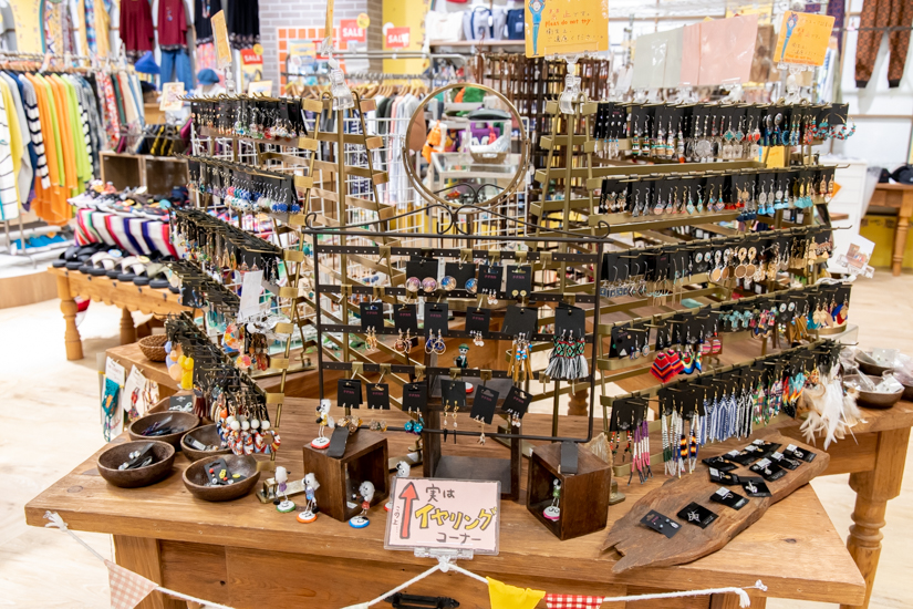 ひときわ目を引く素敵なディスプレイのアクセサリーコーナーは、最初に立ち寄る方も多いコーナーです。イヤリングやネックレス、リングやミサンガなど世界のモチーフを取り入れた個性的な雑貨が展開されています。「チチカカ イオン北谷店」ではアクセサリーだけを買っていく常連さんもいるほど、魅力的なアイテムが盛りだくさん!