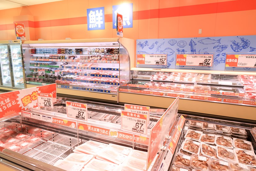 鮮魚コーナー、精肉コーナーでも新鮮なお魚やお肉が並びます。