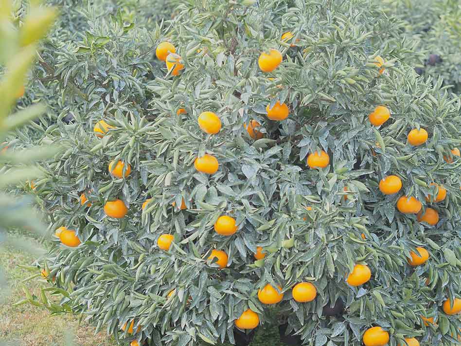 かんきつは花が咲いてから収穫できるまでに約10か月ほどかかるそう。その間に剪定や肥料を与えたり、花やつぼみを間引く作業のほか、病気や害虫、日焼け対策など、たくさんの作業があります。