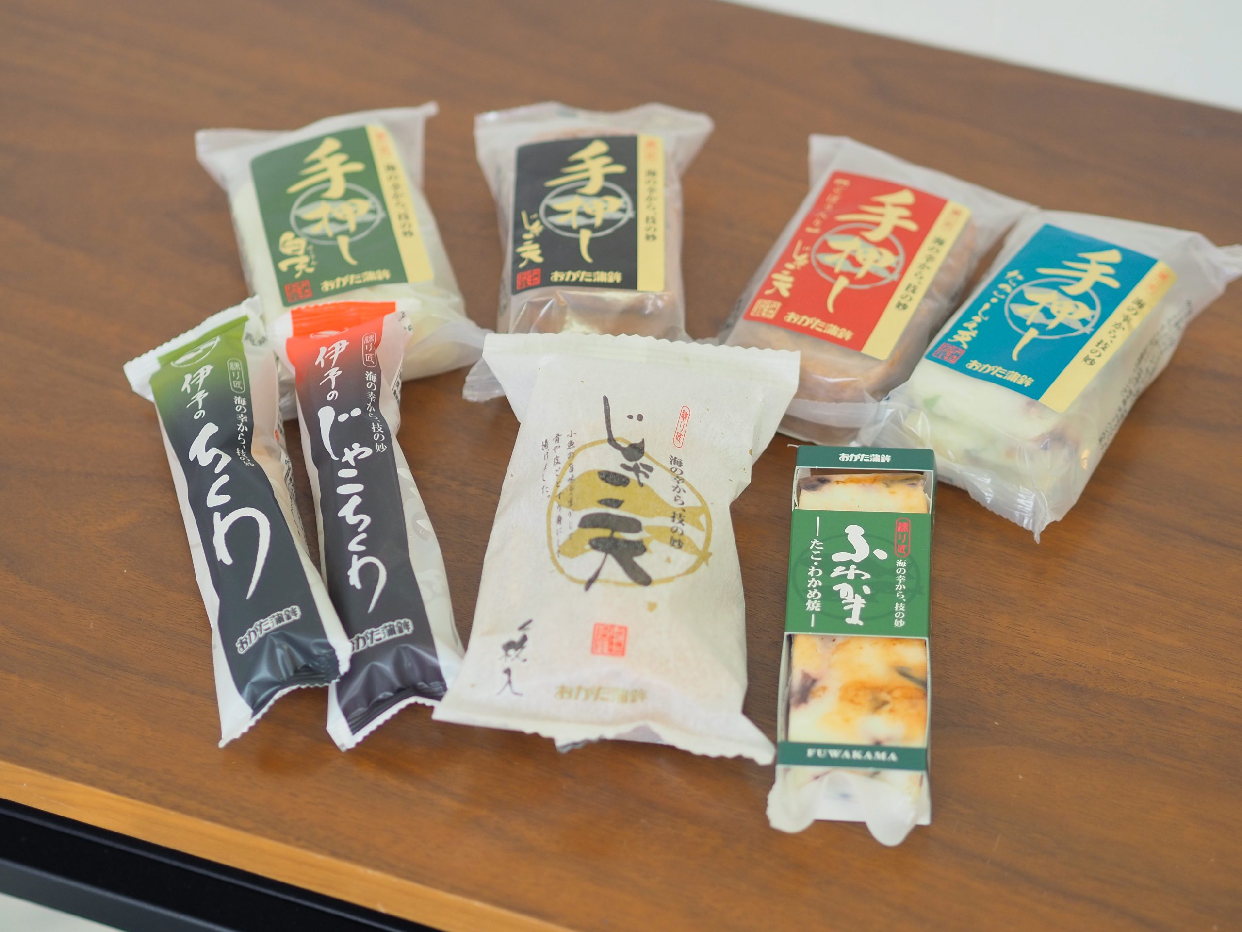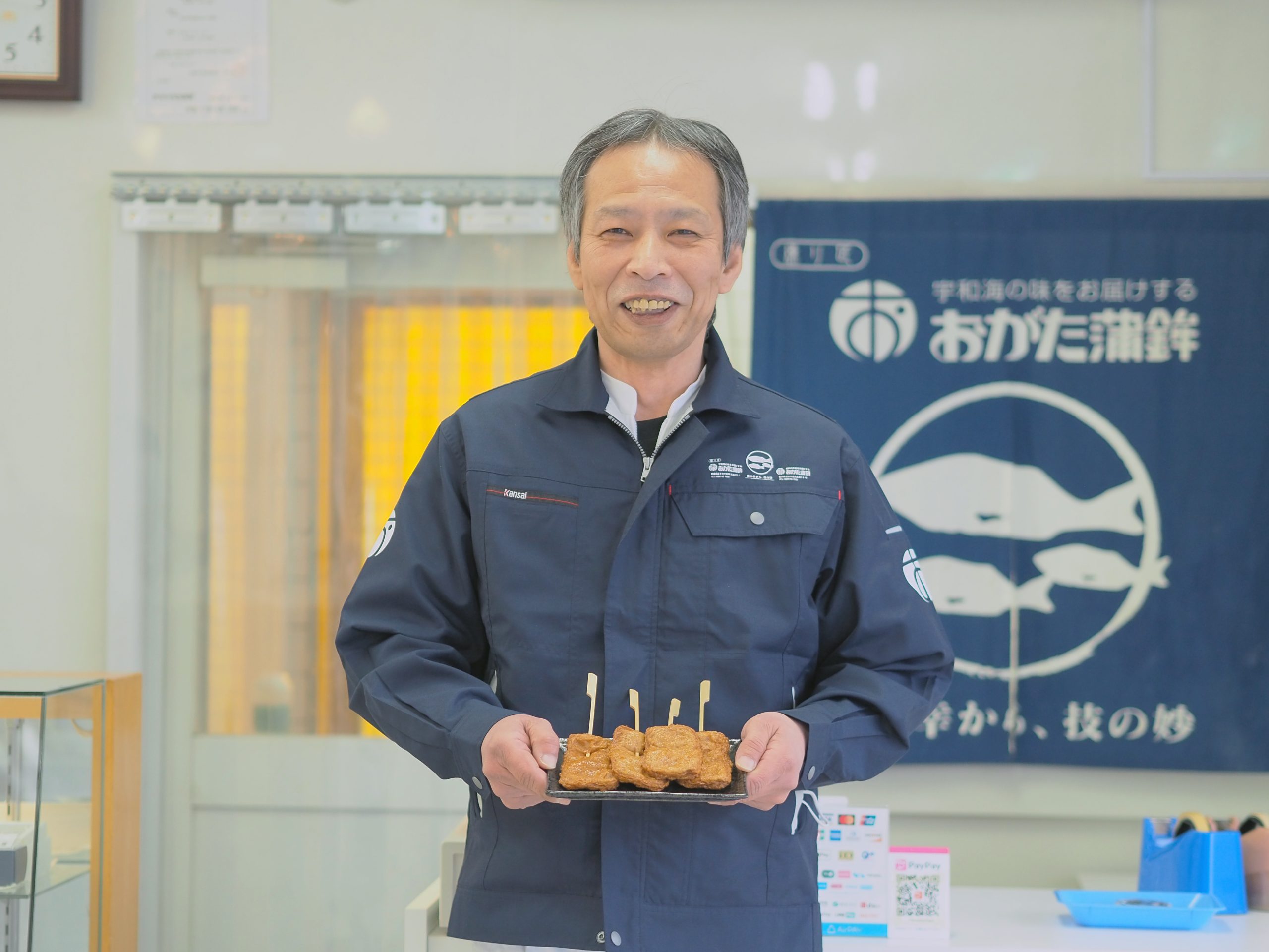 おがた蒲鉾では主に四国の宇和海近海で獲れた新鮮な魚を使い、長年培ってきた職人の技で一つ一つ「手押し」で仕上げるこだわりです。