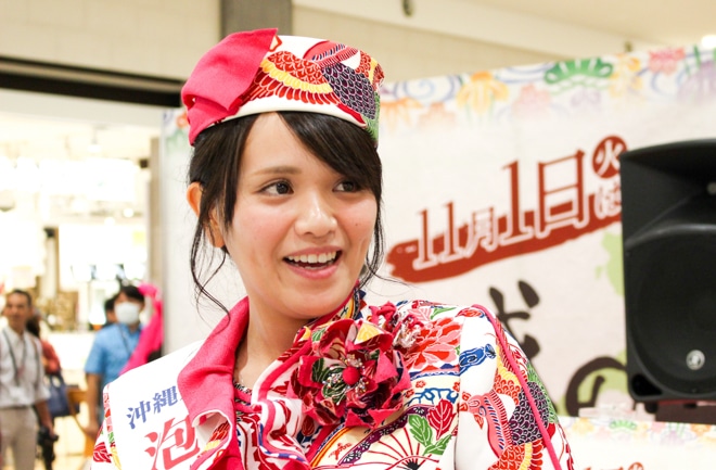 左から、2016年の「泡盛の女王」3人のうちの1人、友寄美幸さん。