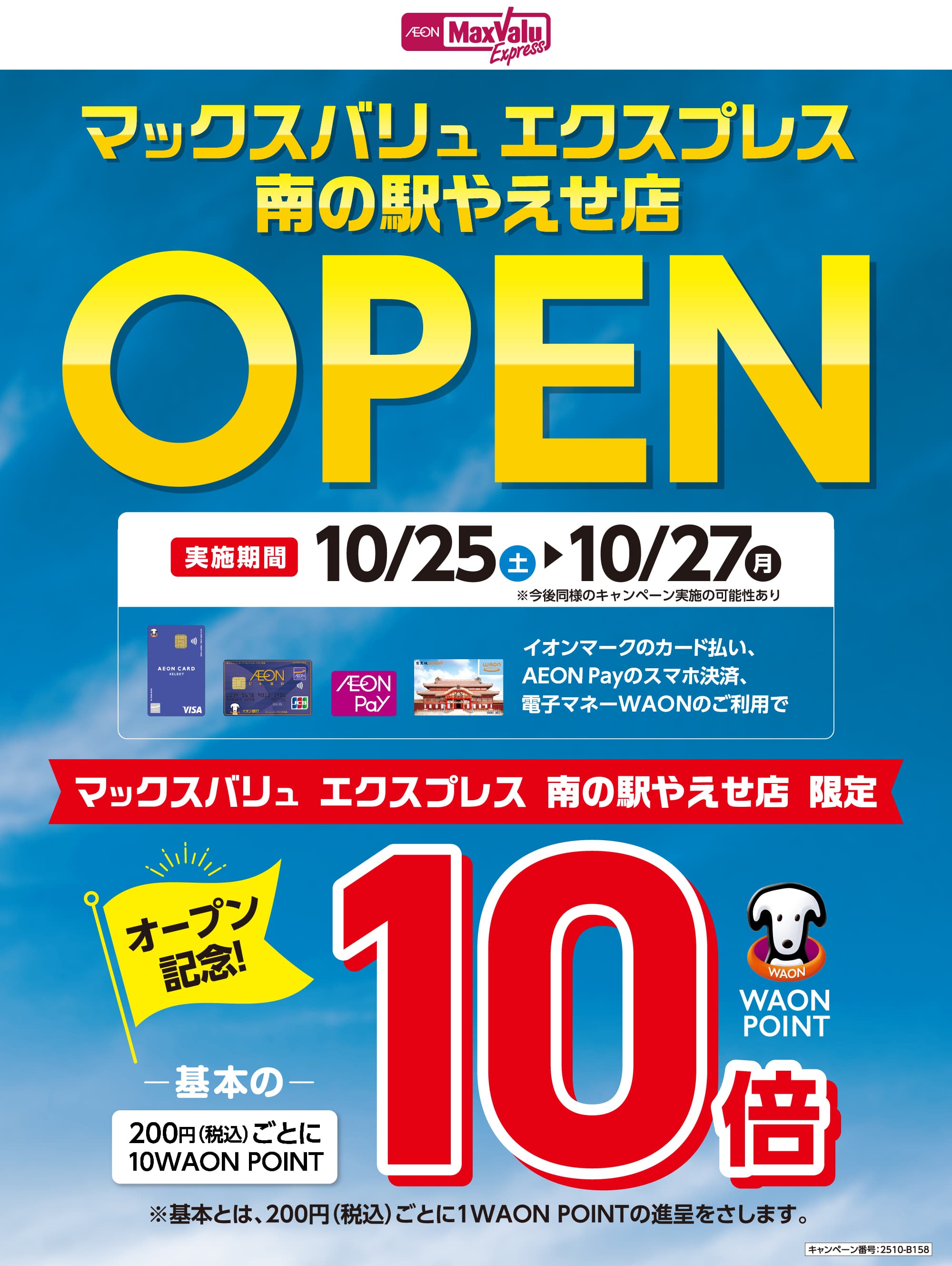 マックスバリュエクスプレス南の駅やえせ店限定 WAON POINT10倍