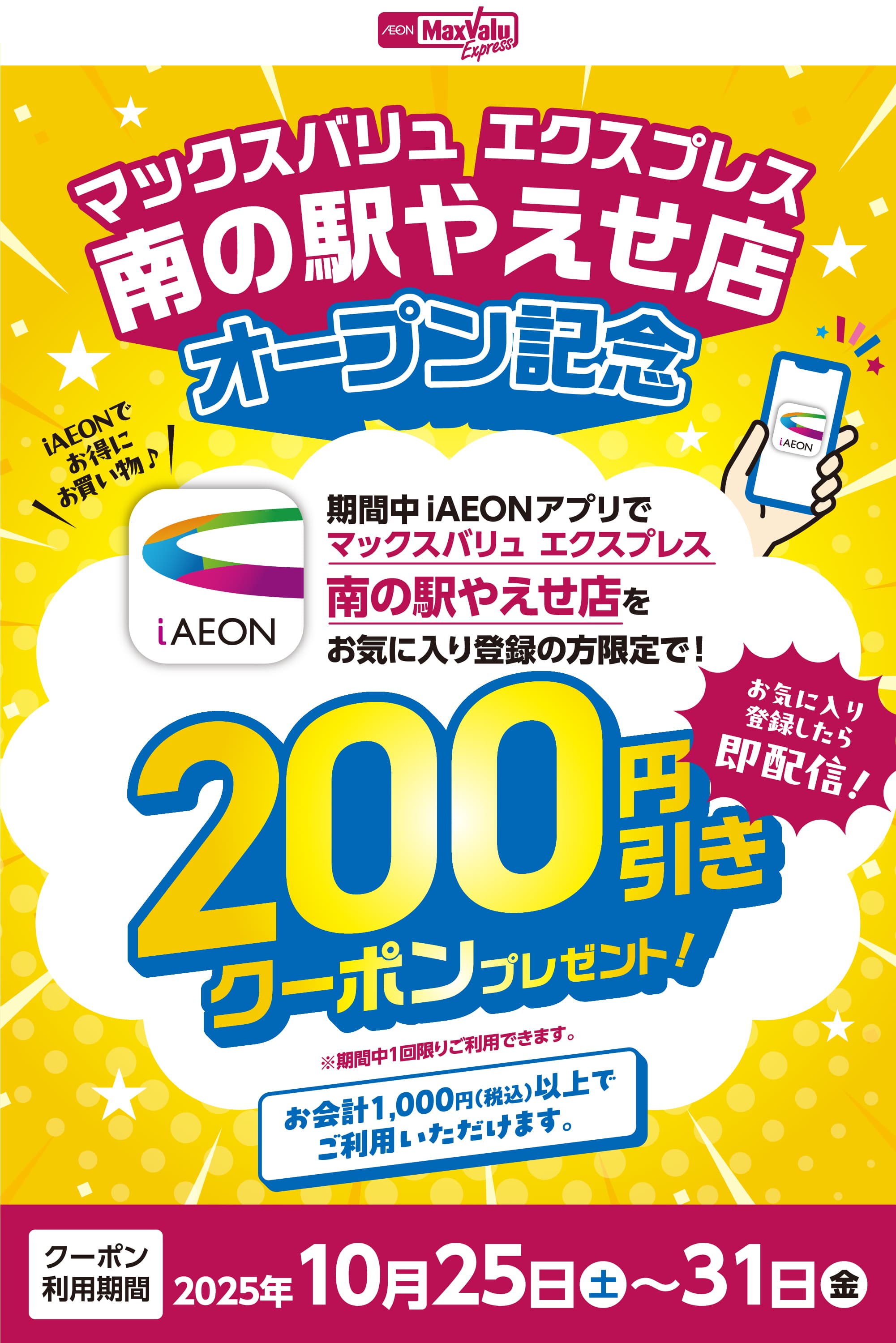 当クーポンは、マックスバリュエクスプレス 南の駅やえせ店のみ利用可能となります。
